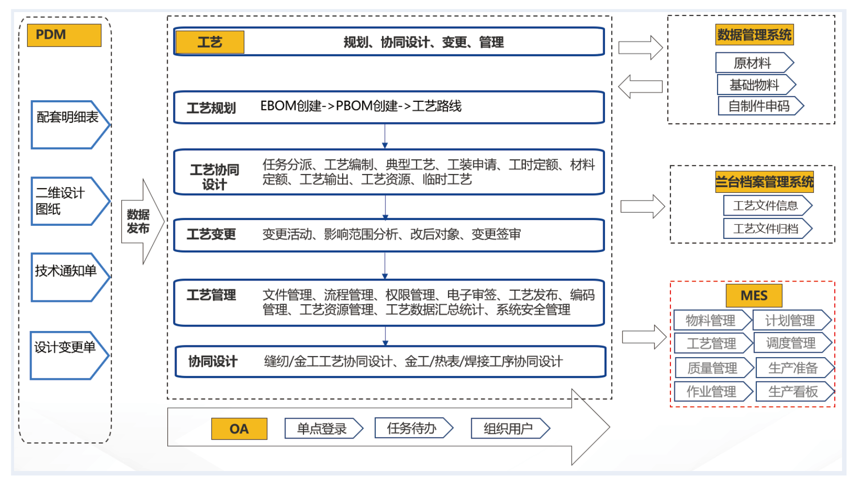 与PDM、OA、数据管理系统、档案管理系统的深度集成,实现跨部门数据流实时同步,消除信息孤岛,打通从设计、工艺到生产的数据流,构建协同高效的信息化生态。