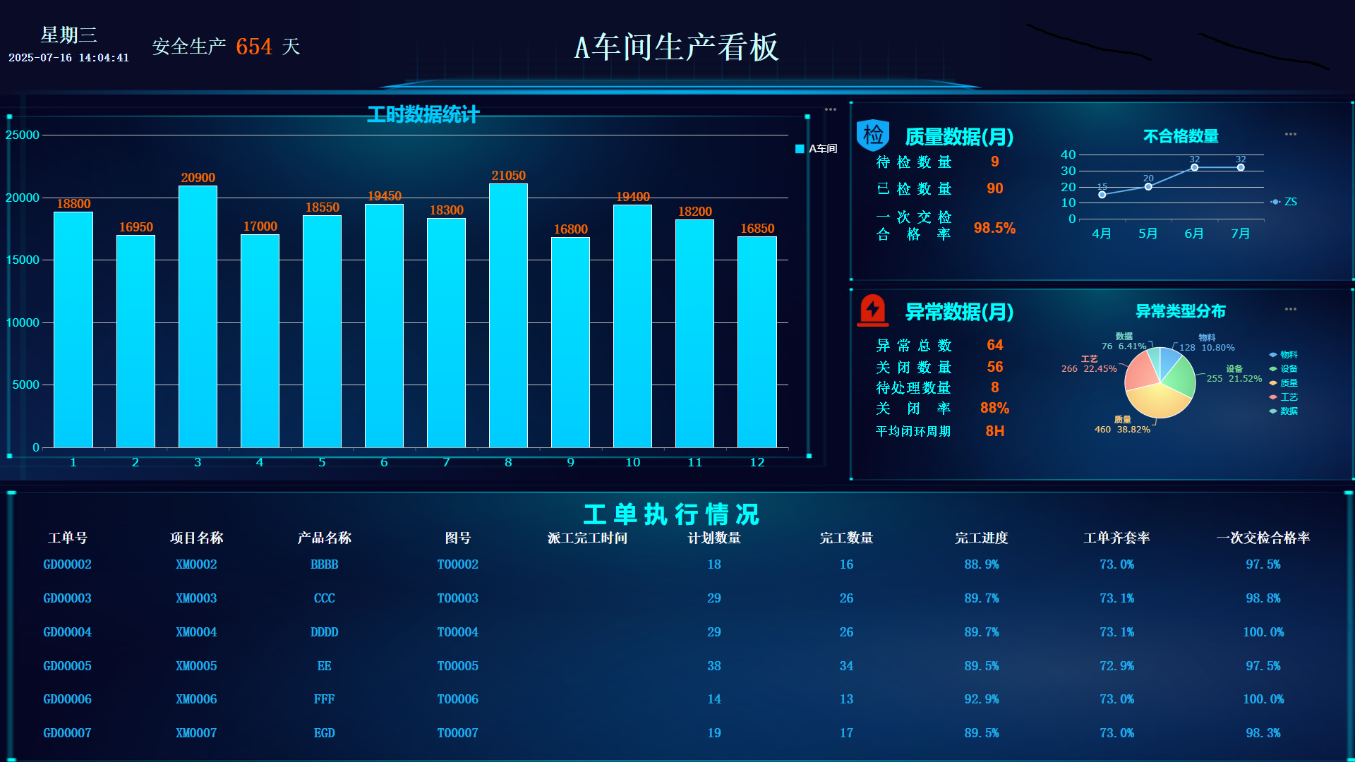 成本核算方面:工时自动统计,成本核算更准确,偏差率显著降低;异常管理模块快速响应设备故障、缺料等问题,异常关闭率高达88%,有效减少损失。